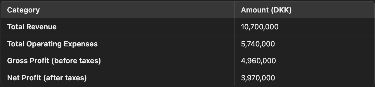 Note: The above figures are based on estimates for a mid-to-high-end location in Copenhagen, factoring in typical costs for renovations, licensing, and initial operational setup.